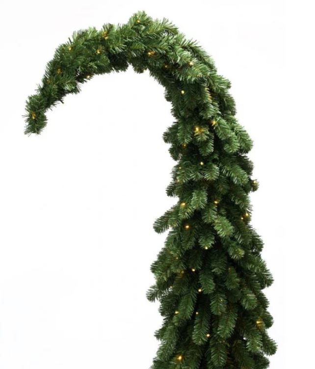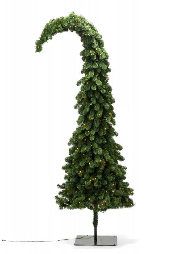 L’albero Grinch, con la sua forma particolare con la punta all’ingiù, ricorda il cappello di un elfo dispettoso.