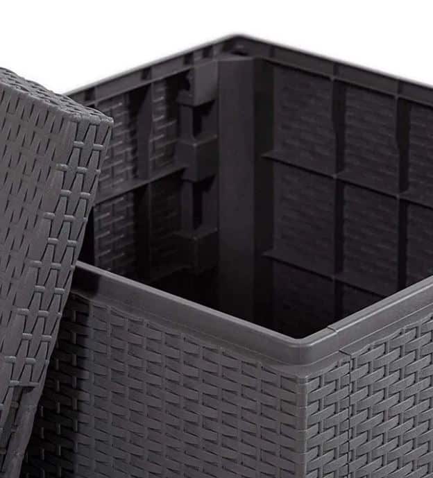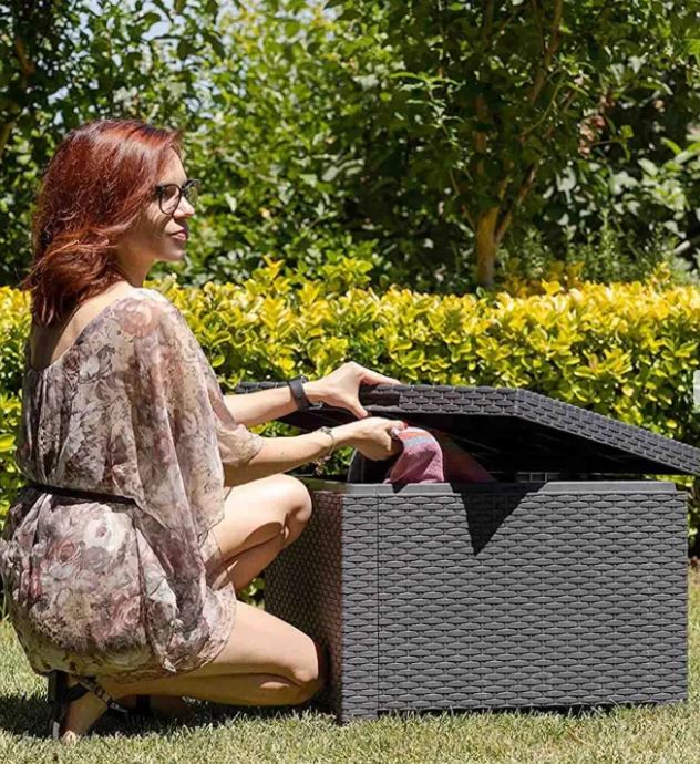 Il tavolino Artemide è una pratica soluzione che permette allo stesso tempo di decorare e organizzare il vostro spazio esterno con semplicità e stile. La sua duplice funzione di tavolino portaoggetti e baule contenitore consente di riporre comodamente coperte, cuscini e oggetti vari e averli sempre a portata di mano. La capienza interna è di 130L, mentre le dimensioni esterne corrispondono a cm 59x59x45h. Resistente ai raggi UV, il montaggio è immediato e la manutenzione minima, per pulirlo è sufficiente un panno bagnato e sapone neutro.