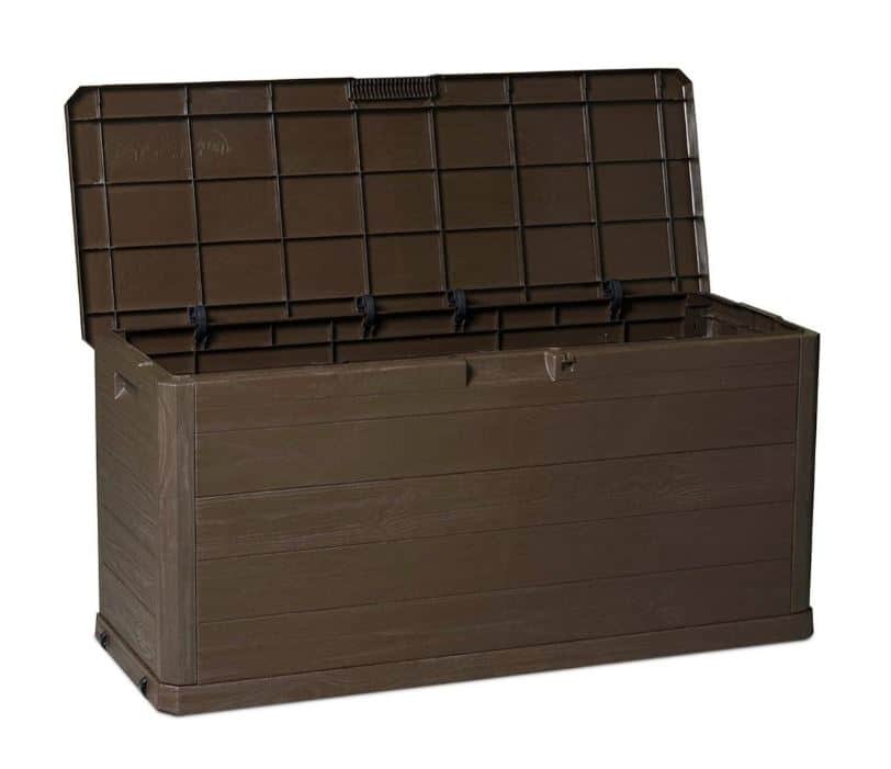 Struttura in resina inalterabile, resistente al gelo e alle intemperie ed ai raggi uv, maniglie per un comodo trasporto, lucchettabile, facile montaggio ad incastro.