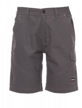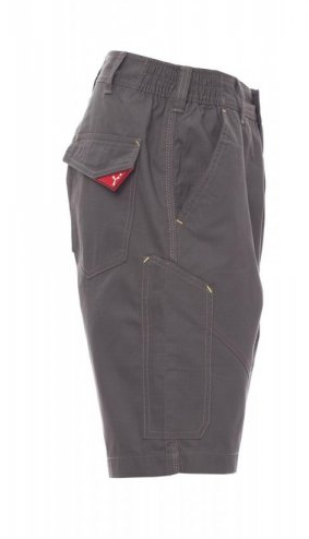 Bermuda uomo, elastici laterali e passanti in vita, chiusura con zip e bottone in plastica.