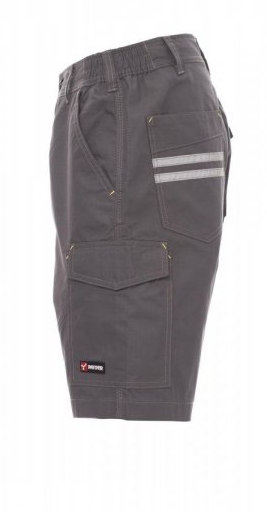 Due tasche anteriori a taglio classico, una tasca laterale Lock System, un porta metro, due tasche posteriori una aperta con bande retroriflettenti e una con patta a strappo. Inserti ed impunture a contrasto, cucitura tripla interno gamba.