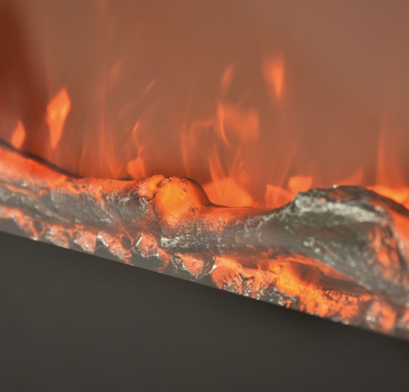 nero da 50 pollici. I ceppi di legno sembrano ardere davvero,