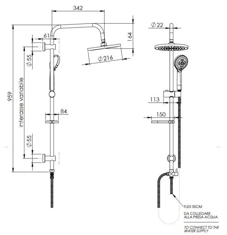Colonna Doccia con soffione e doccetta.