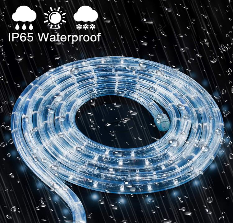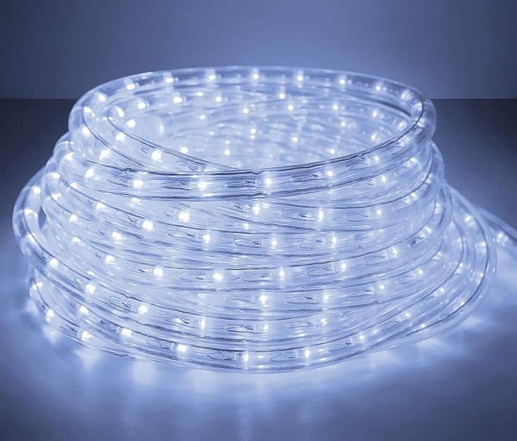 Tubo luminoso trasparente luce bianca, lunghezza da 8mt, ogni metro di tubo contiene 24 led, si può usare sia in interno che in esterno.