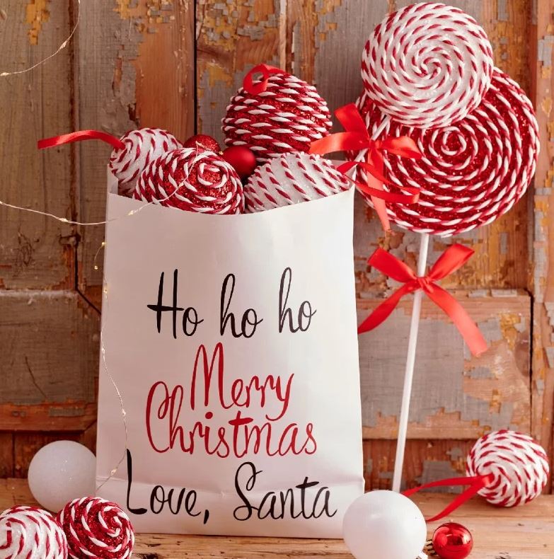 Simpatico decoro lecca-lecca bianco e rosso rifinito con dettagli rossi e bianchi, ideale per per l’allestimento dell’Albero di Natale.