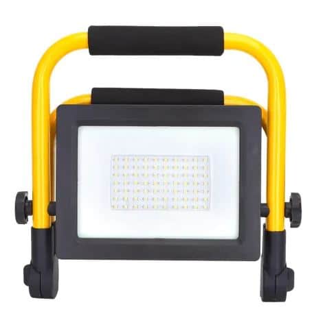 Faro led portatile con supporto, per essere posto facilmente su qualsiasi pavimento.