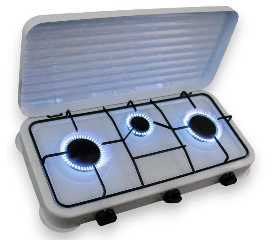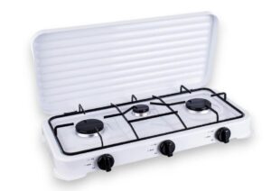 Perfetto per cucinare all’aperto, questo fornello a gas offre praticità e prestazioni elevate grazie alla sua struttura robusta e ai suoi tre fuochi regolabili.