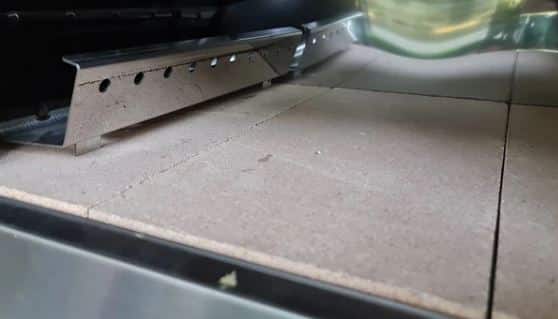 Sotto la pietra refrattaria è posta una lastra di scamotek ( un materiale di silicato di calcio che permette un isolameneto maggiore).
