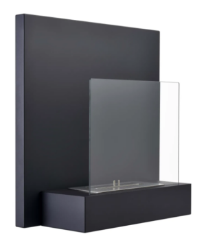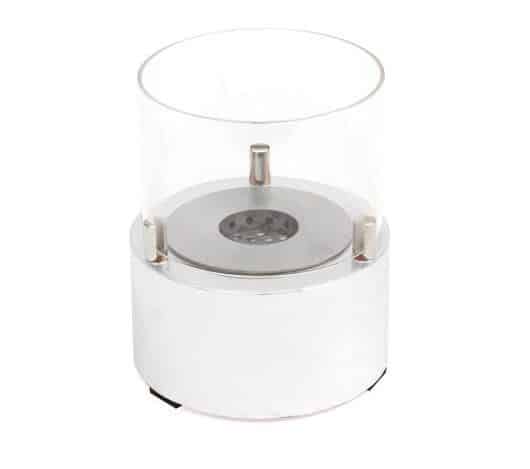Camino da tavolo di design a bioetanolo in vetro e ferro galvanizzato.