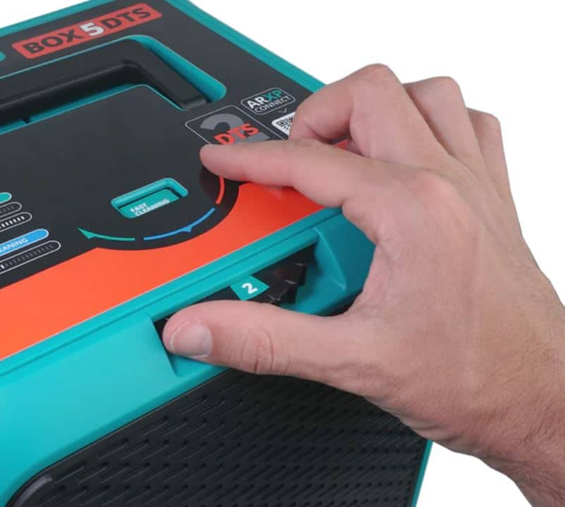 ARXP BOX5 160DTS è l’idropulitrice ad alta pressione dotata di Dualtech Tecnology System. All’interno della macchina sono presenti 2 gruppi pompa-motore. Attivati insieme, portano la portata d’acqua a raggiungere 850 l/h, il doppio rispetto a quella media di una idropulitrice home&garden.
