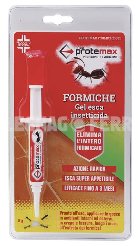 Caratteristiche: è un’esca gel insetticida pronto all’uso, altamente appetibile per le formiche, ricca di sostanze nutritive e zuccherine. La fluidità e l’elevato potere energetico del gel consentono alle formiche di cibarsi in abbondanza e velocemente. Dopo essersi nutrite, le formiche tornano al loro rifugio diffondendo l’esca all’intera colonia fino alla regina. Rimane appetibile a lungo, garantendo la sua efficacia fino a 3 mesi dall’applicazione.