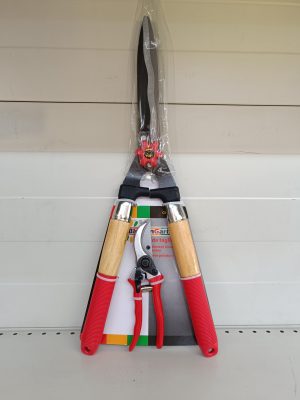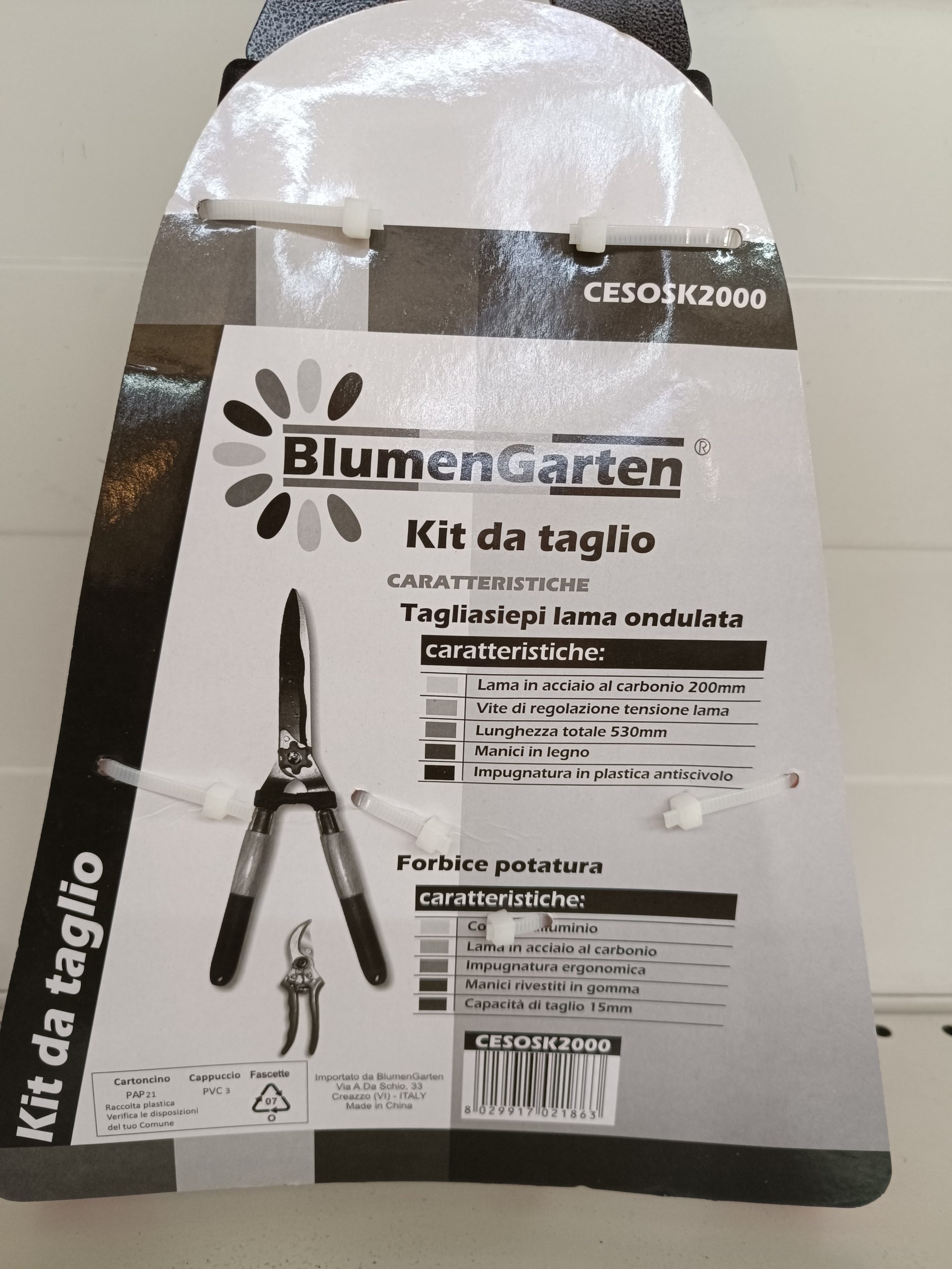 Comprende forbici tagliasiepe con lama ondulata, ideale per potare siepi e piante con rami.