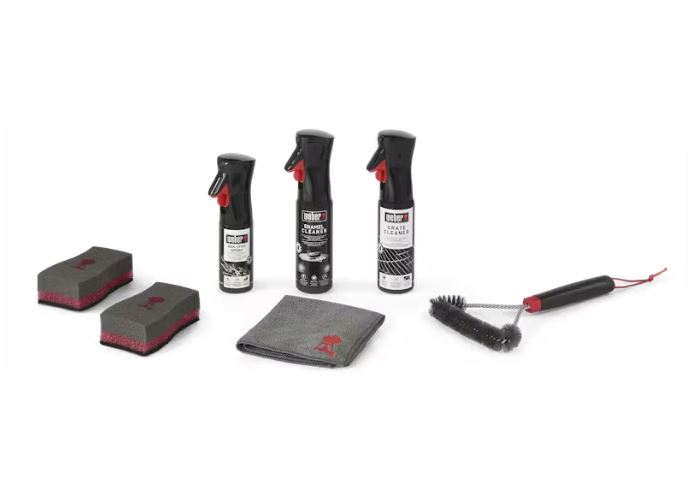 INCLUDE UNA SPAZZOLA TRIANGOLARE PER GRIGLIE, DETERGENTE PER GRIGLIE, SPUGNA (2 PEZZI), SPRAY ANTI-ADERENTE, DETERGENTE PER SMALTO E PANNO IN MICROFIBRA