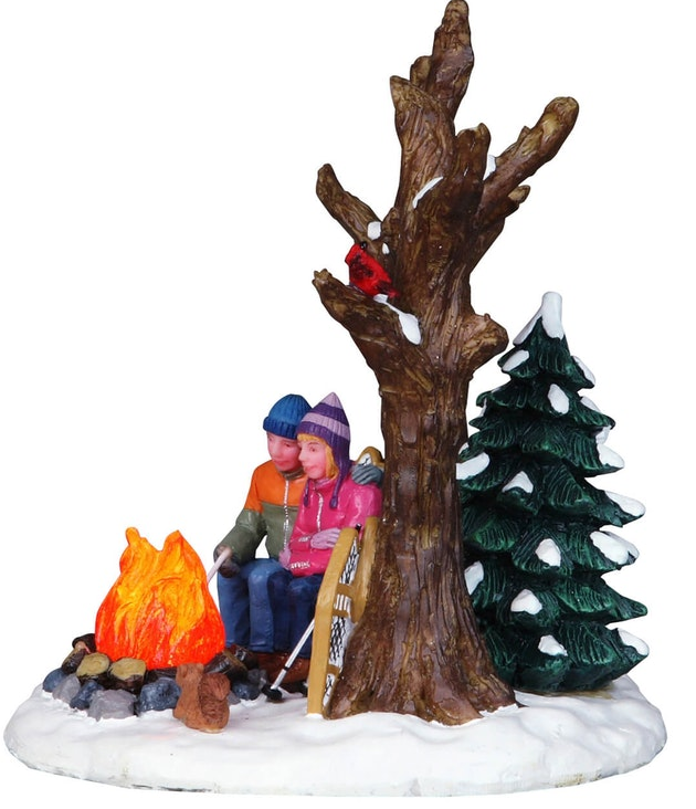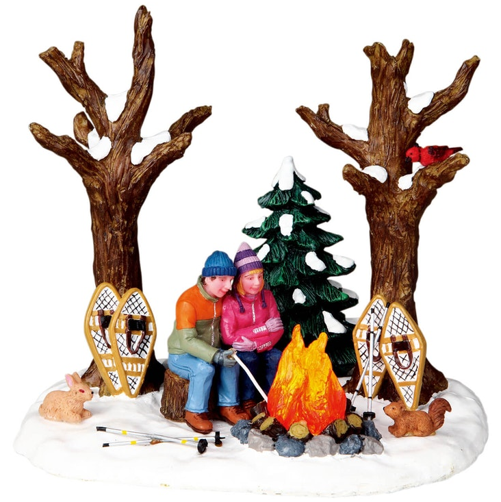 Lemax ragazzi davanti al fuoco, si scaldano dopo una lunga giornata passata a sciare.