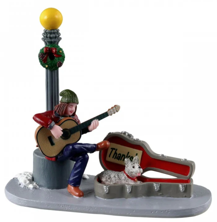 Suona alcuni brani natalizi con la sua chitarra con il suo fedele compagno al suo fianco, il Downtown Busker arriva in città ogni anno in questo periodo.