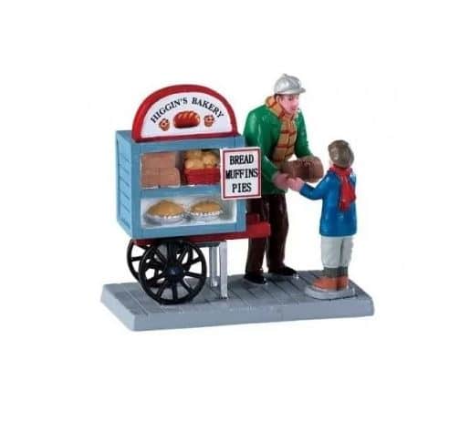 In questa scenetta il venditore è intento a dare dei gustosi dolcetti ad un bambino. Questa figurina è perfetta da abbinare ad altri venditori per creare una zona street food all’interno del vostro villaggio di Natale Lemax.
