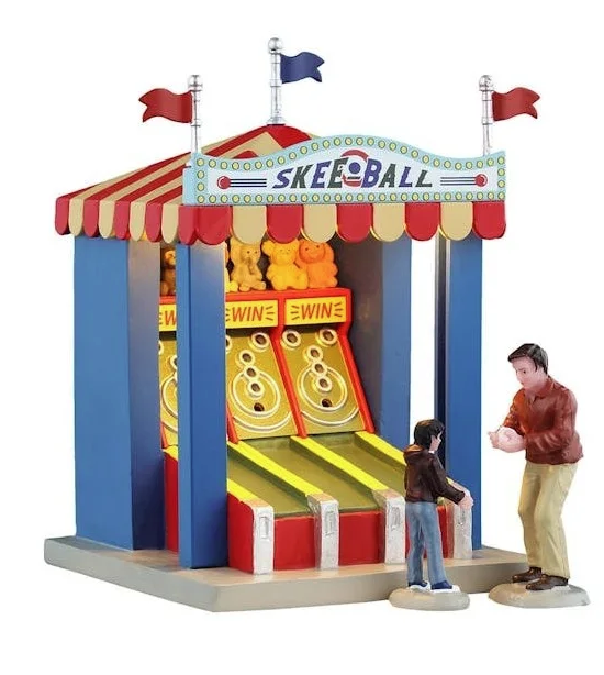 Un padre e un figlio condividono un momento di gioia durante una partita di skee ball, con le risate che riempiono l’aria mentre si alternano a segnare punti.