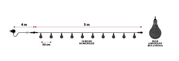 Catena luminosa 10 Lampadine 5 Mt luce calda Lotti 36192