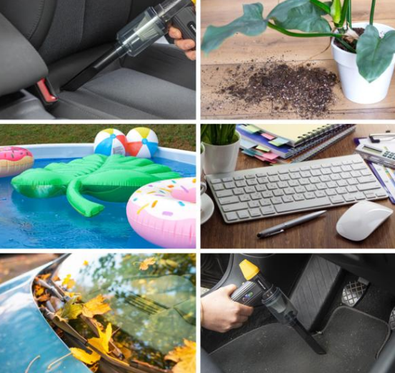 Grazie a una potenza di aspirazione di 15,7 kPa, questo aspirapolvere e soffiatore portatile rimuove facilmente polvere e briciole da tavoli, fessure, mobili e altro ancora. Essendo alimentato a batteria, è particolarmente comodo da usare in luoghi sprovvisti di presa di corrente, come ad esempio in auto.