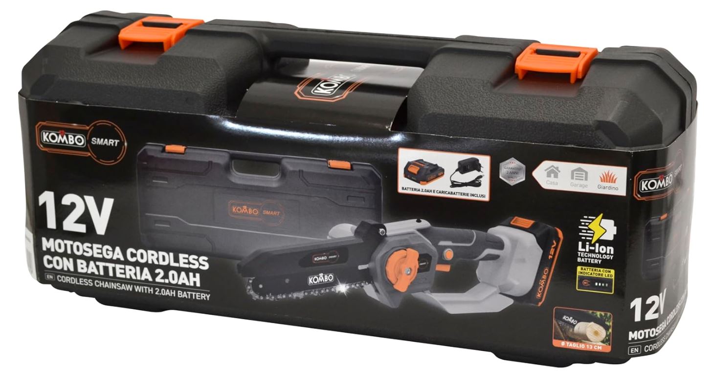 BATTERIA RICARICABILE E COMPLETA DI ACCESSORI – Il kit include una batteria al litio da 2000 mAh (2,0 Ah-10C), un caricabatterie da 0,5 A e una pratica bottiglia di olio per catena per garantire una lubrificazione efficace e duratura. Tutto il necessario è già incluso.