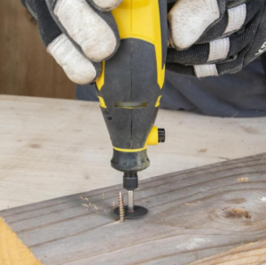 Corpo ergonomico con impugnatura a pistola con aree gommate e supporto metallico pieghevole per riporre l’utensile.