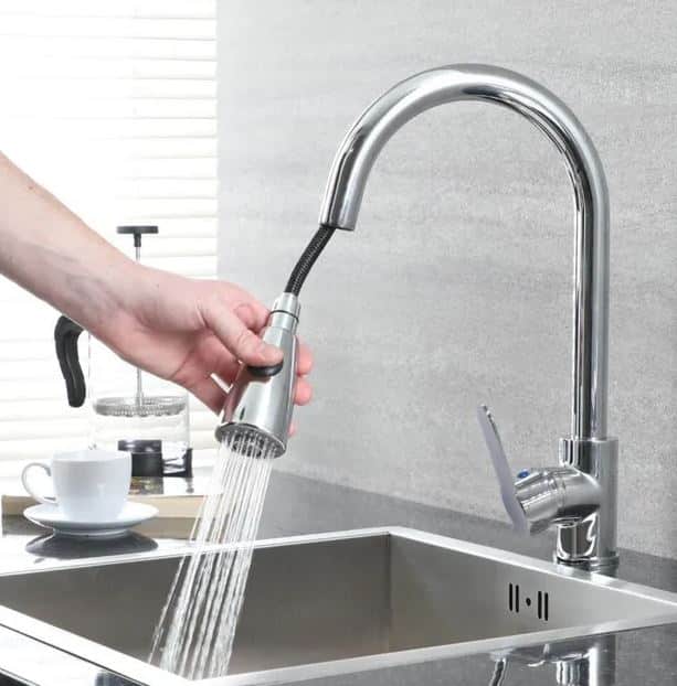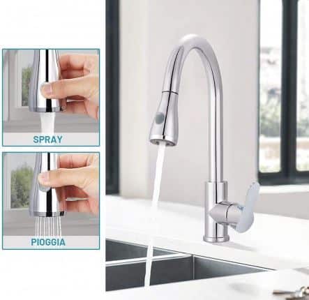Rubinetto per lavello con doccetta estraibile.