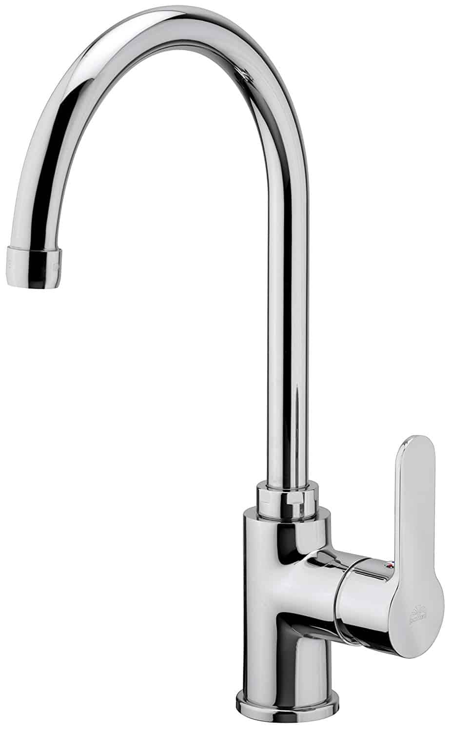 Miscelatore lavello monoforo con canna girevole ad ombrello dal diametro di 20 mm.