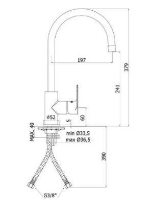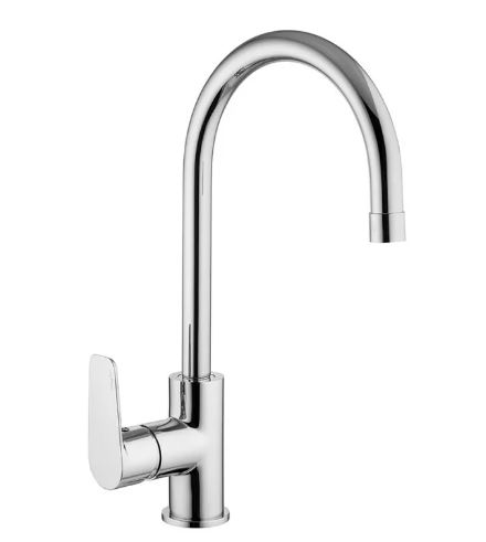 Il miscelatore per lavello è realizzato interamente in ottone cromato lucido per aumentarne la resistenza alla corrosione.