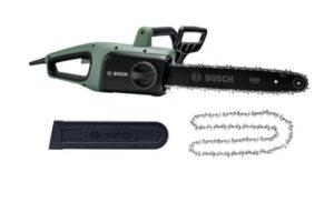 La motosega UniversalChain 35 Bosch 06008B8303 è fornita con catena da 35 cm, copricatena e asta di guida.