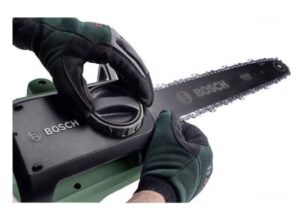 Dotato di sistema SDS Bosch che permette il tensionamento ed una manutenzione della catena senza ausilio di attrezzi, serbatoio laterale d’olio lubrificante con sistema automatizzato di lubrificazione della catena e sistema antirimbalzo per una miglior sicurezza.