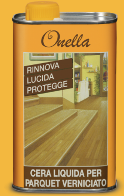 Onella è una cera autolucidante facile e rapida da applicare. Lascia sulla superficie una sottile pellicola trasparente dall’aspetto satinato, antiscivolo, resistente al calpestio, lavabile con acqua e che protegge il parquet evitando l’usura della vernice.