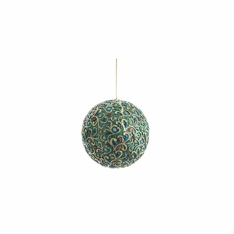 Bellissima palla natalizia da 12 cm decorata completamente a mano con inserti dorati verde e blu