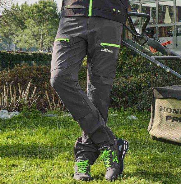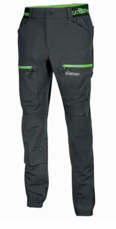 Pantaloni da lavoro stretch in tessuto U-4 con vestibilità jogging e inserti elasticizzati in vita e sul fondo per offrire una migliore vestibilità. Chiusura centrale con zip e bottone gommato antigraffio.