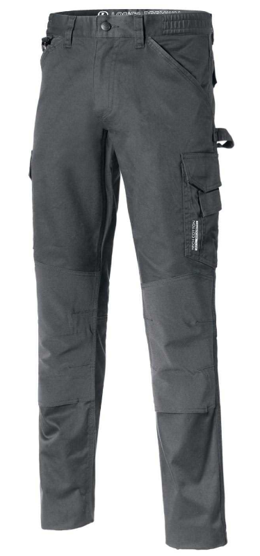Pantalone da lavoro traspirabile e idrorepellente, chiusura centrale con zip YKK e bottone, due larghe tasche frontali, tasconi laterali, 2 tasconi dietro chiusi con patta, rinforzi sulle ginocchia con possibilità di inserire la ginocchiera, tripla cucitura nei punti di maggior sforzo.