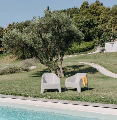 Poltrona in resina Petra Z185 da giardino ideale anche per il terrazzo o per l’arredamento bar. Facile da pulire. Colore bianco.