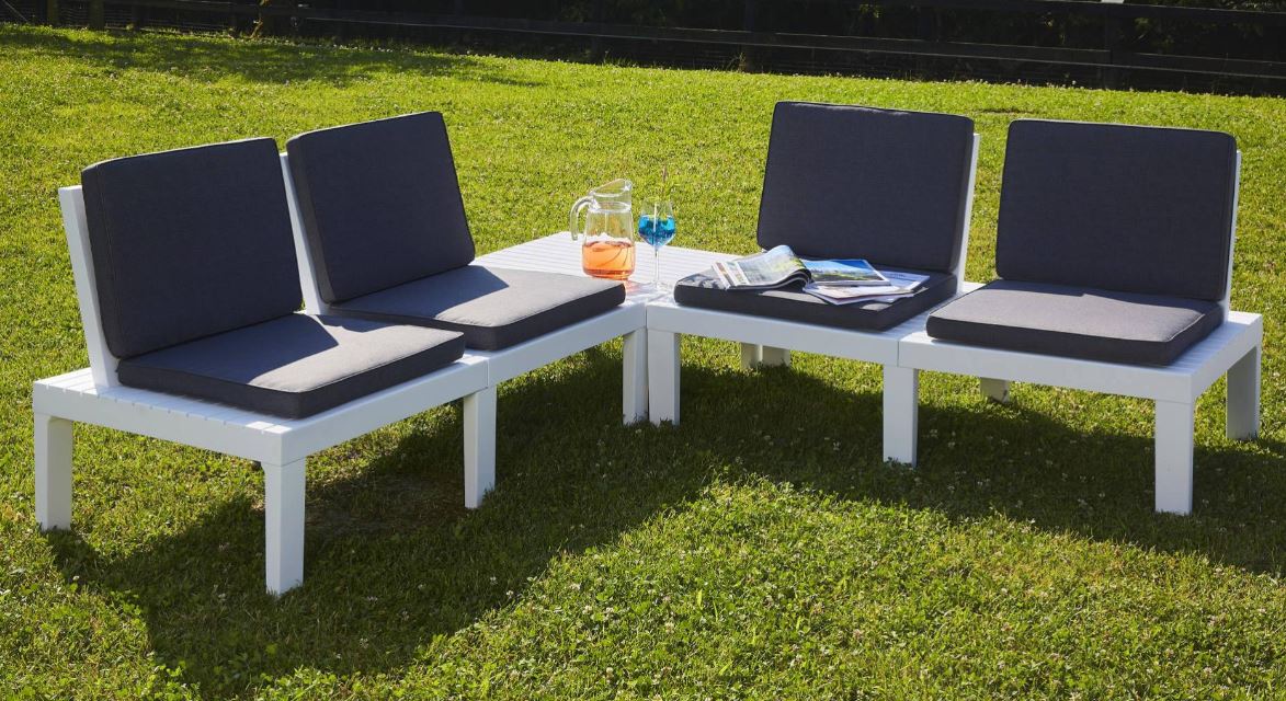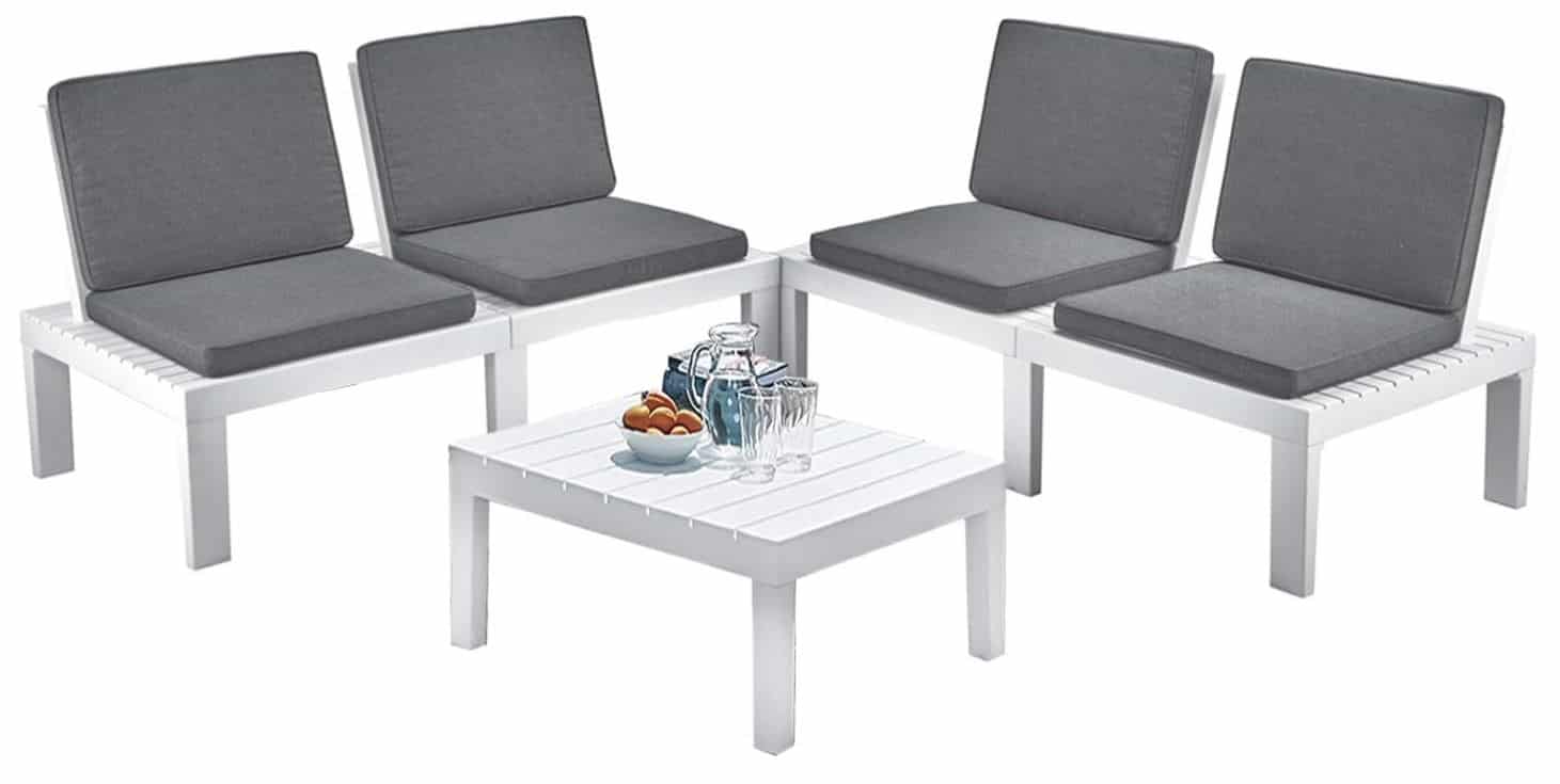 Il salotto da giardino, Molok, è perfetto per creare un ambiente confortevole e accogliente all’aperto. Realizzato in polipropilene resistente e duraturo, è dotato di cuscini inclusi per un comfort ottimale. Può essere utilizzato sia per esterno che per interno, offrendo molteplici possibilità di utilizzo.
