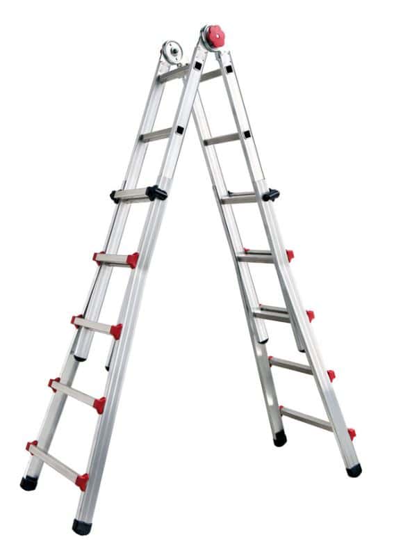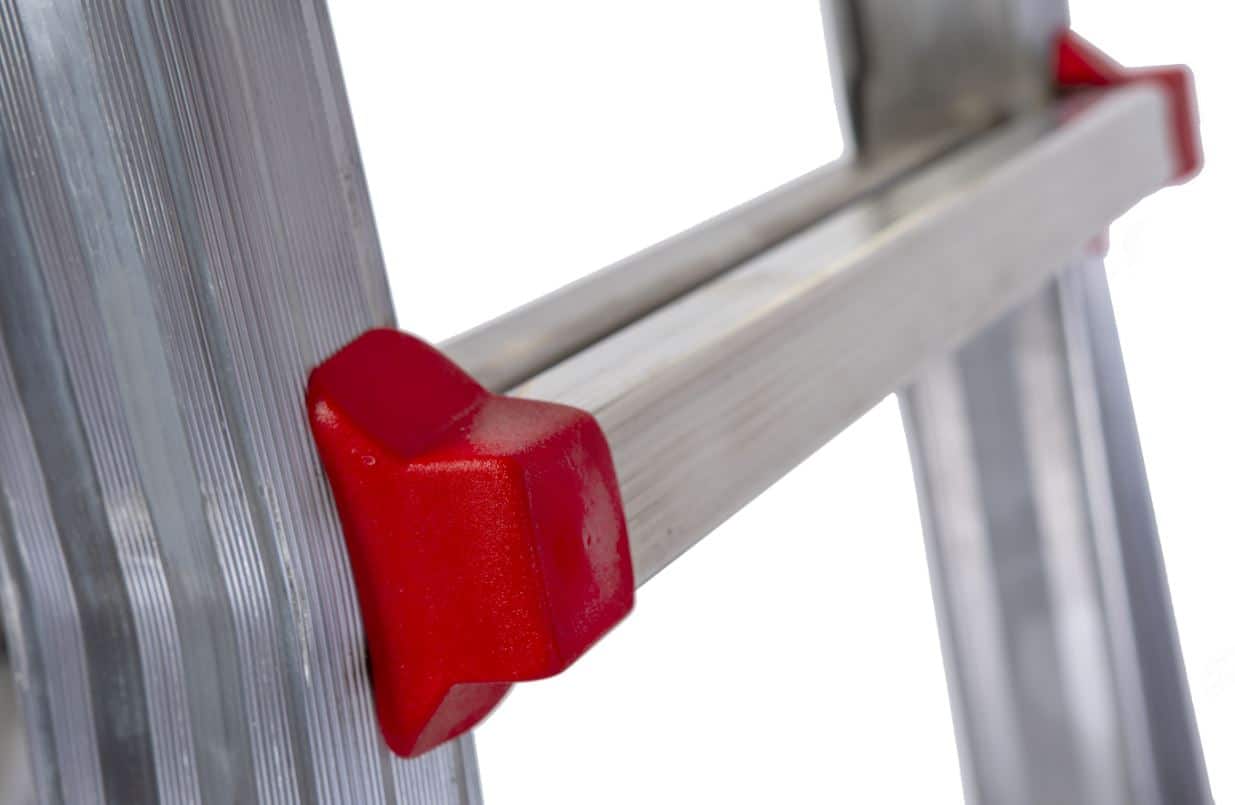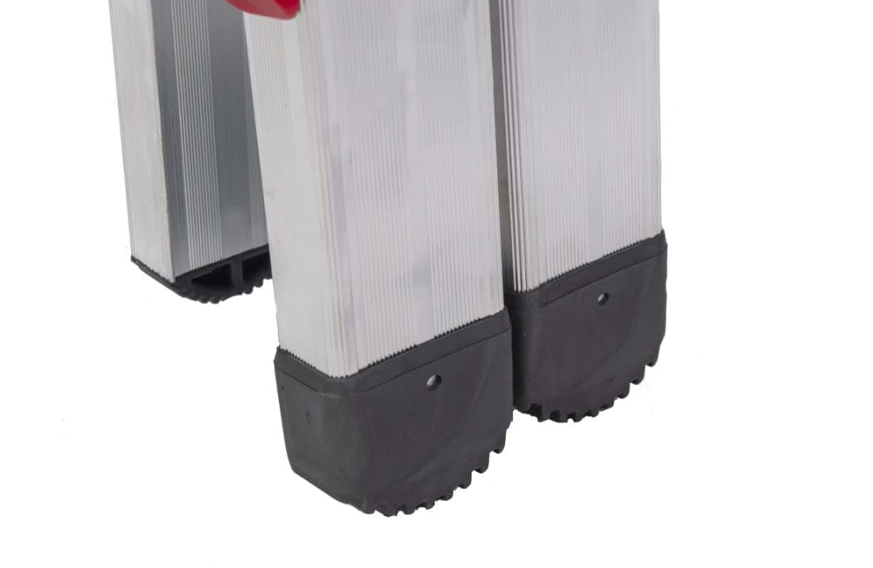 Scala telescopica in alluminio estruso. Base allargata che garantisce la massima stabilità. Ganci in acciaio rivestito. Dotata di cerniera automatica professionale che consente il bloccaggio della scala sia in apertura che in chiusura. Sezione profilo a “U” da 59×25 mm, sezione gradino 30×30 mm.