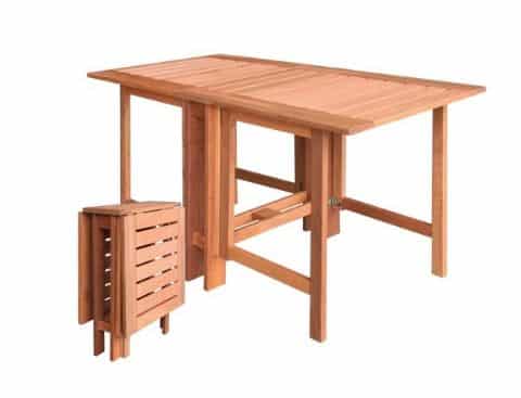 Tavolo da esterno pieghevole e richiudibile, completamente in legno massello tropicale denominazione Meranti finemente lavorato, trattato con olii protettivi vegetali per garantire la massima resistenza alle intemperie.