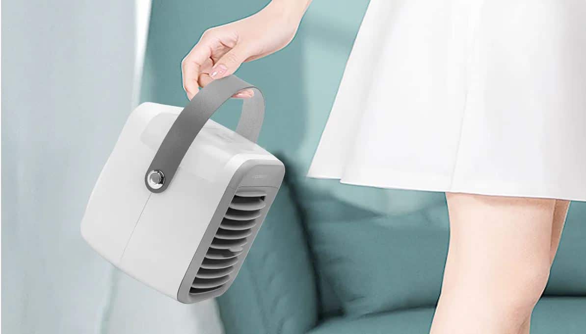 Raffrescatore ventilatore ad acqua portatile ricaricabile.