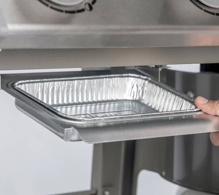 il sistema di gestione del grasso incanala i succhi di cottura verso una leccarda lontano dai bruciatori