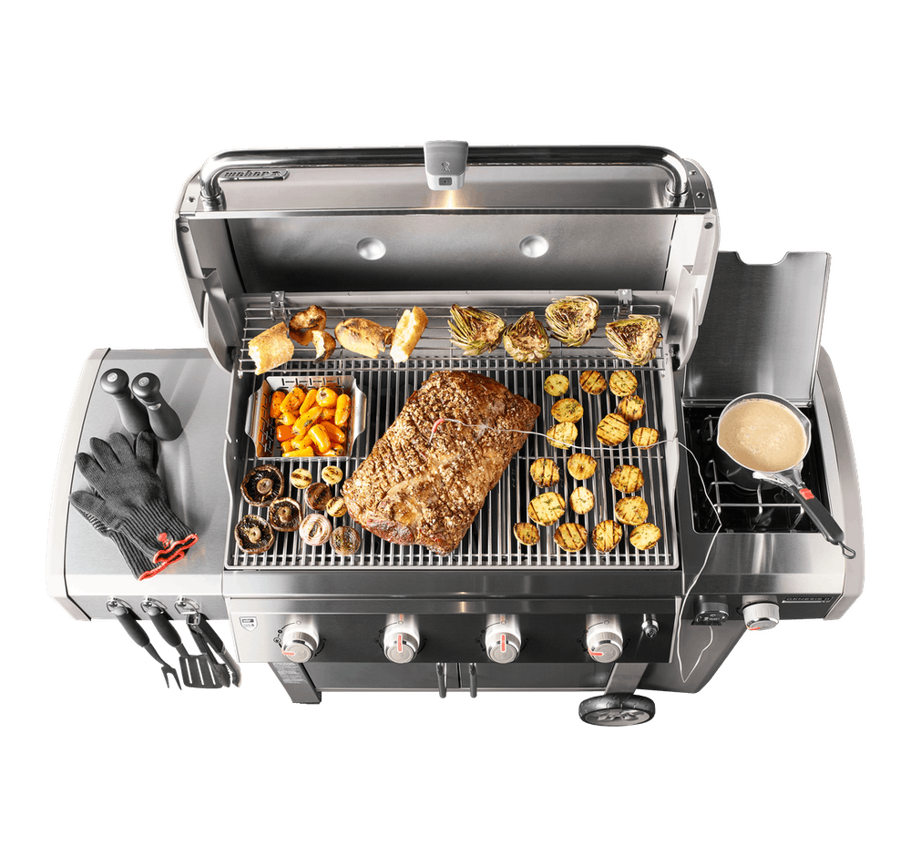 I quattro bruciatori e l’ampia area di cottura consentono di grigliare un antipasto rustico al centro delle griglie mentre le verdure cucinano su un lato. Lessa la pasta o cuoci la salsa sul bruciatore laterale per avere ogni cosa a portata di mano, dove ne hai davvero bisogno.È il barbecue che ti consente di creare le tue opere d’arte culinarie. L’ispirazione che ti serve per portare la tua passione per la cucina sulla griglia a un altro livello. E il potente sistema di cottura GS4 è l’artefice di tutto questo. Invita gli amici, chiama la famiglia e accendi l’esperienza con il tuo barbecue a gas Genesis® II LX S-440 GBS.POTENZA BRUCIATORI: (KW)