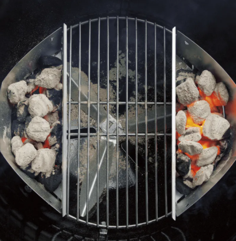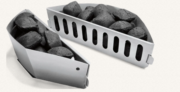 I cesti separa carbone, ti consentono di disporre in modo uniforme e senza alcun sforzo il carbone acceso sulla griglia del combustibile per creare il calore indiretto necessario per grigliare un pollo intero o costolette, alla perfezione.