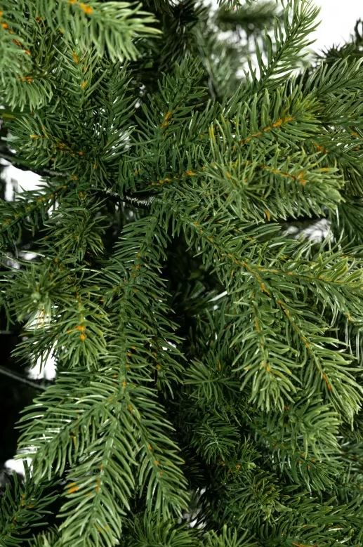 Sherwoood è un albero di Natale moderno caratterizzato da una chioma con forma conica che si espande dalla base verso l’alto mantenendo elevati standard di volume e compattezza. Le foglie sono contraddistinte da una combinazione di polietilene (PE) e policloruro di vinile (PVC), ma con una predominanza netta del polietilene. Infatti, il 90% del fogliame complessivo è costituito da polietilene, mentre il PVC viene utilizzato solo nella parte più interna dei rami per riempire gli spazi vuoti e creare un effetto di profondità.